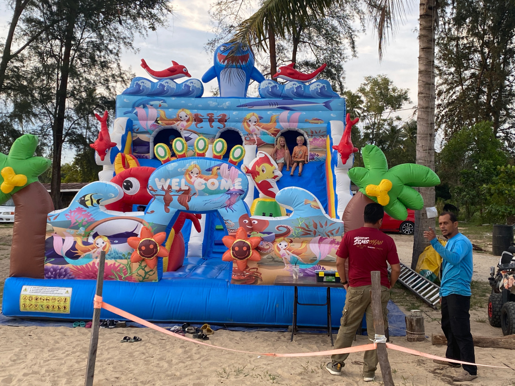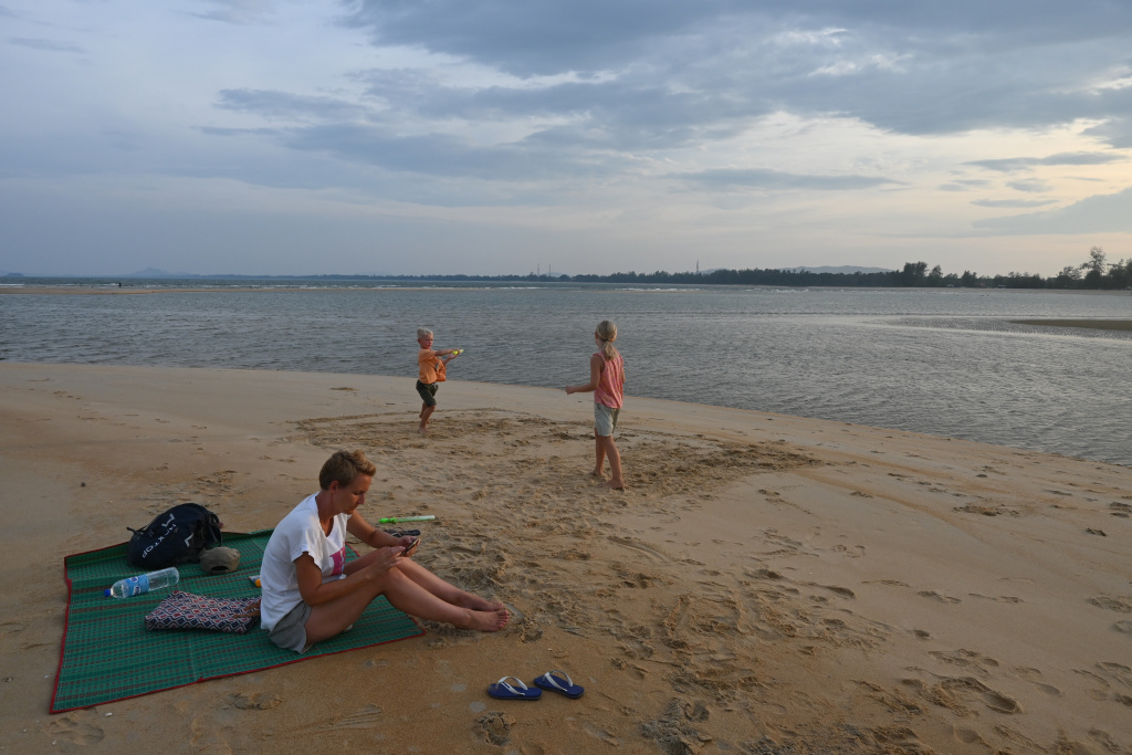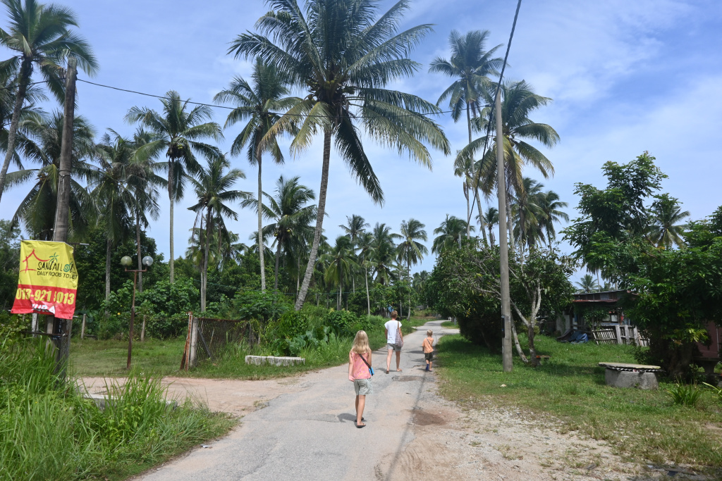 Auf dem Weg nach Kuala Lumpur machen wir einen Zwischenstopp in Cherating. Ein kleines Dorf an der Ostküste von Malaysia. Ab November beginnt hier die Surf-Saison. Dann kommt Kuala Lumpur zum Surfen hierher. Jetzt, kurz vor Saison-Start sind die Bürgersteige allerdings noch hoch geklappt.Die meisten Restaurants und Läden sind noch geschlossen. Wir wohnen in zweiter Reihe und teilen uns die Wege mit Fröschen und Waranen. Die Affen sind auch nie weit.Am Sonntag erwischen wir noch die Hüpfburg am Strand kurz vorm Luft Ablassen.Delia und Reto üben sich in Batik.Mit Erfolg.Dabei lassen sich prima neue Freundschaften knüpfen.Wir nutzen die Ruhe um uns ein wenig auf Vordermann zu bringen.Reto und Kai frisch frisiert.Wir besuchen die nahegelegene Aufzuchtstation für Meeresschildkröten. Die Becken sind leider etwas klein geraten.Am Fluss gehen wir auf die Suche nach Glühwürmchen.Wir schippern ca. eine Stunde durch die Dunkelheit. Dann müssen wir umkehren, da die Flut kommt. Unser Kahn passt soeben noch unter der Brücke durch. Wir müssen uns zwischen die Bänke legen.Glühwürmchen !!Reto braucht etwas deftiges. Wir verspeisen Meeresfrüchte.Der Surfkurs fällt leider ins Wasser, da Delia beim Baden von einer Qualle geküsst wird. Das ist sehr schmerzhaft, aber die Jungs in der Raggea-Bar haben einen Kanister Essig zur Erstversorgung parat.Nach ein paar sehr ruhigen Tagen wollen wir nach Kuala Lumpur aufbrechen.