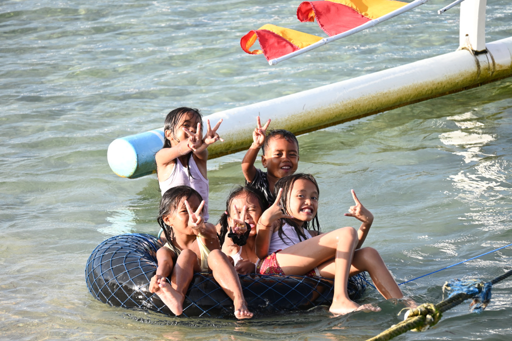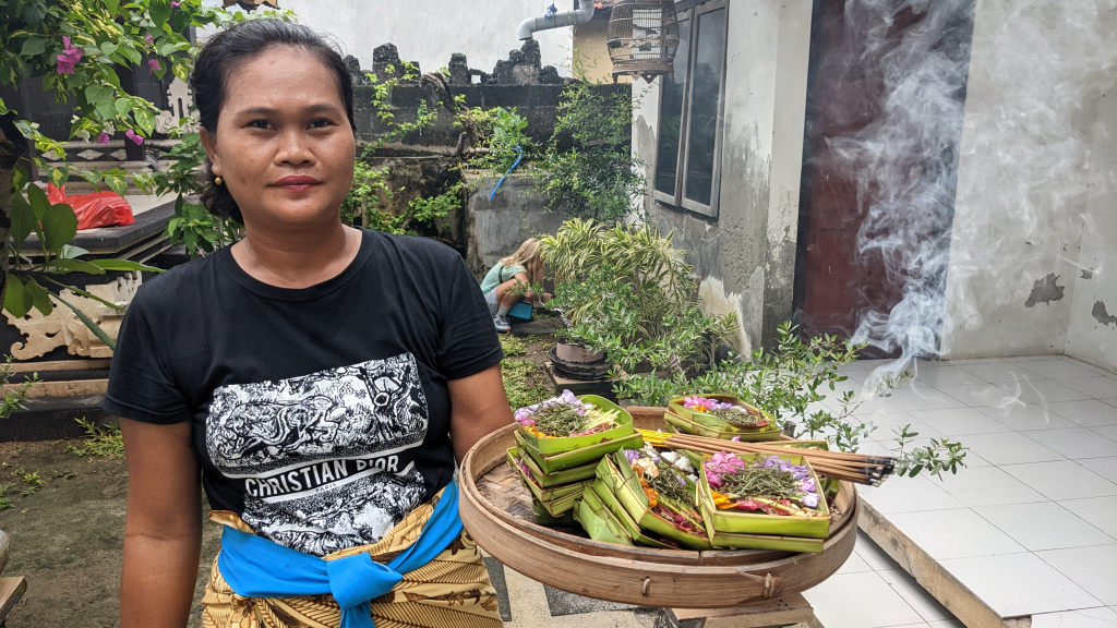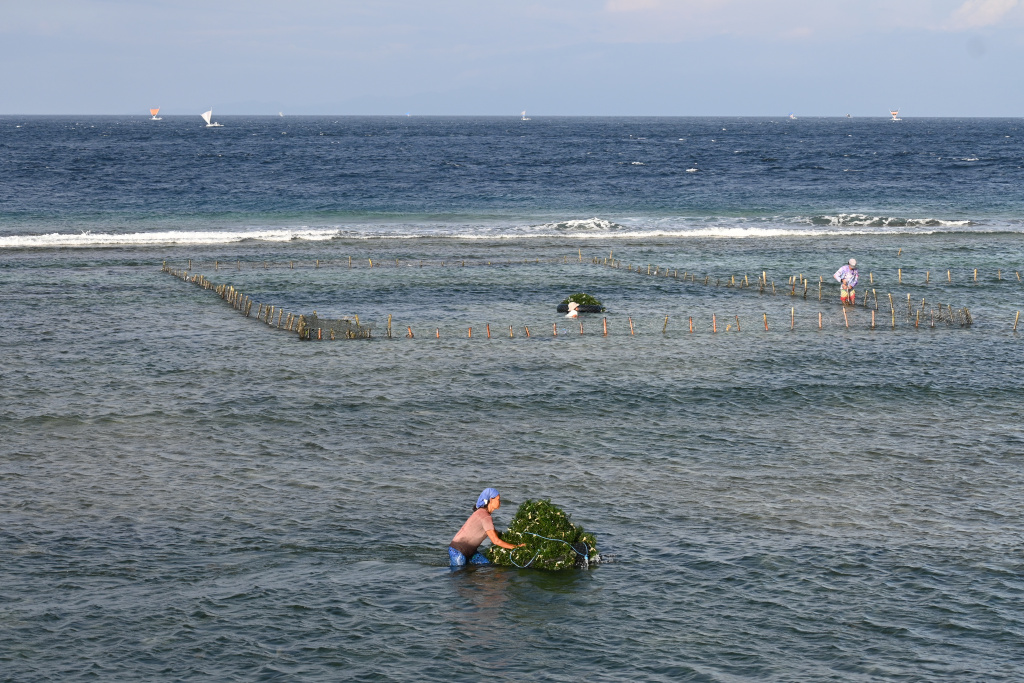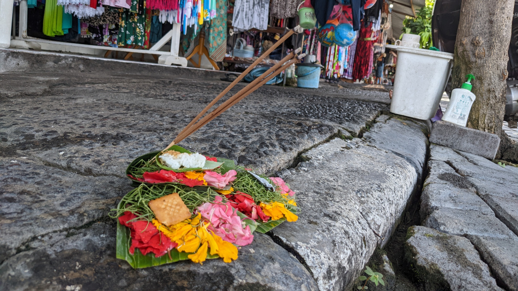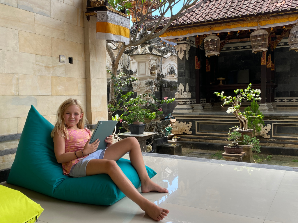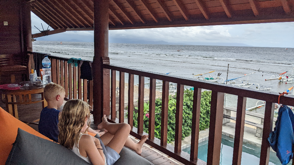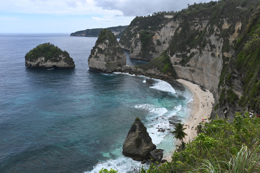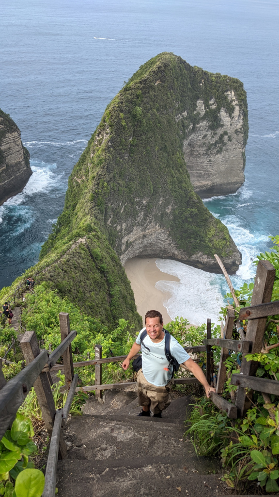 Wir fahren von Ubud nach Sanur im Großraum Denpasar. Hier stoßen wir den Prozess an unsere Visa zu verlängern und machen ein wenig Reiseplanung. Der Strand eignet sich nicht unbedingt gut zum Schwimmen, dafür aber umso besser zum Rumstromern.Dabei findet sich so allerlei Interessantes.Hier werden gerade Muscheln gesammelt. Auf unserem Balkon können dann auch Delia und Reto feststellen, dass sie in der Sonne fürchterlich anfangen zu stinken. Die Eltern scheinen also doch nicht zu lügen;-)Wir entscheiden uns ein paar Tage auf Nusa Penida zu verbringen, die größte Insel vor Bali. Als wir 2010 auf der nahegelegenen Nusa Lembongan waren, gab es auf Nusa Penida noch gar keine Unterkünfte.Vorher wollen wir aber noch die kulinarischen Möglichkeiten von Sanur austesten… und immer schön auf die Opfergaben achten!Pho Bo beim Vietnamesen mit Dragonfruit-Shake.Das Kartenspiel von Delia’s Freundinnen und Freunden kommt mittlerweile regelmäßig zum MauMau-Einsatz.Sushi lieben alle!!Das Visaverfahren läuft und wir machen uns mit unseren Bootstickets auf zum Hafen. Ehe wir uns versehen, werden unsere Rucksäcke aufs Schiff getragen.Und unsere Kinder ebenso:-) Die Indonesier sind übrigens alle irre freundlich!Auf Nusa Penida beziehen wir eine Unterkunft mit kleinem Pool direkt am Meer. Hier lässt sich prima chillen. Dabei sehen wir den Fischern mit ihren Auslegerbooten zu.Der Innenhof ist vollgestopft mit Tempelchen und Bonsais. Das Hobby unseres Gastgebers Wayan.Über das Meer blicken wir auf Bali. Der große Vulkan hüllt sich meist in Wolken.Nebenan im „Chill“. Prima Aussicht über die Algenfarmen und leckeres Essen.Die Kids haben mal wieder zwei Deutsche erwischt und erzählen ihnen ihre Geschichte.Am nächsten Morgen haben wir Glück und sehen den Gunung Batur.Währenddessen machen sich die Fischer auf den Weg.Unter uns werden Algen an im Wasser gespannten Seilen ausgesetzt. In sechs Wochen wird ausgewachsenes Seegras für Kosmetika etc. geerntet und der Turnus beginnt erneut.Nadja freundet sich mit der Dorfjugend an.Die Kids können wahrscheinlich schwimmen ehe sie laufen lernen.Wir entdecken, dass das Meer gleich vor unserer Nase voller Korallen und bunter Fische ist!Beim Schnorcheln.Auf Nusa Penida ist sehr viel weniger Verkehr als auf Bali, sodass wir wieder auf Mopeds steigen und die Insel erkunden.Durch Zufall entdecken wir den Ort, an dem die Toten verbrannt werden.Tempel gibt es natürlich auch in Hülle und Fülle.Sowie reich geschmückte Wächter.Wir finden einen tollen Platz zum Sundownern.Abends gibt es Babi Guling, das indonesische Spanferkel. Nicht leicht zu finden im größten muslimischen Land derr Erde. Sieht anders aus und schmeckt anders. Vor allem ist es hölllisch scharf. Viel zu scharf für die Kids.Dafür gibt es auf dem Rückweg Eis beim Sonnenuntergang.Wir teilen unsere Unterkunft mit einer Schweizer Familie, die auch ein Jahr unterwegs ist. Die Kinder freuen sich endlich mal wieder unter ihresgleichen zu sein.Am Regentag darf auch gemeinsam Film geschaut werden:-)Wir Fahren zum unglaublichen Diamond Beach.Die in die Felswand gehauene Treppe ist so steil, dass wir es vorziehen stattdessen zum Atuh Beach hinabzusteigen.Aber zuerst schauen wir uns alles in Ruhe von oben an.Auch dieser Abstieg ist ganz schön abenteuerlich!Aber er lohnt sich!Der beschwerlich Aufstieg am Ende.Zurück in der Unterkunft belagern Delia und Reto einen Fischer, der ihnen etwas von seinem Fang abtritt. Die Fische werden umgehend gebraten und verspeist.Den größten Fisch bekommen wir für 10€ (3kg) zum Kauf angeboten. Wir schlagen ein. Unsere Gastfamilie kocht und wir essen gemeinsam.Aber zunächst wir natürlich geschuppt und ausgenommen.Es gibt frittierte Fischhappen und köstliche Fischsuppen mit jeder Menge Gräten;-) Wir lieben es!Am nächsten Morgen geht es früh los. Unsere Gastgeberin ist schon mit den Opfergaben unterwegs. 200 brauchen sie jede Woche! Blumen, Feuer und Wasser vereinen sich in den Blättterschälchen.Nach eine guten Stunde Mopedfahrt ist die Südküste erreicht.Hier liegt der berüchtigte Kelingking Beach. Die Klippe gleicht von oben einem T-Rex:-)Der Weg über den schmalen Grat nach unten geht in eine fast senkrechte Kletterpartie über (siehe hinten im Bild).Früh am Morgen ist man noch fast allein hier. Gegen Mittag rollen die Tagestouren von Bali an und der Klettersteig wird gefährlich voll.Die Affenfamilie beobachtet das Treiben gelassen von oben. Wir fahren morgen zurück nach Sanur und wollen von dort weiter in ein Surfcamp, welches unsere Schweizer Freunde uns empfohlen haben.
