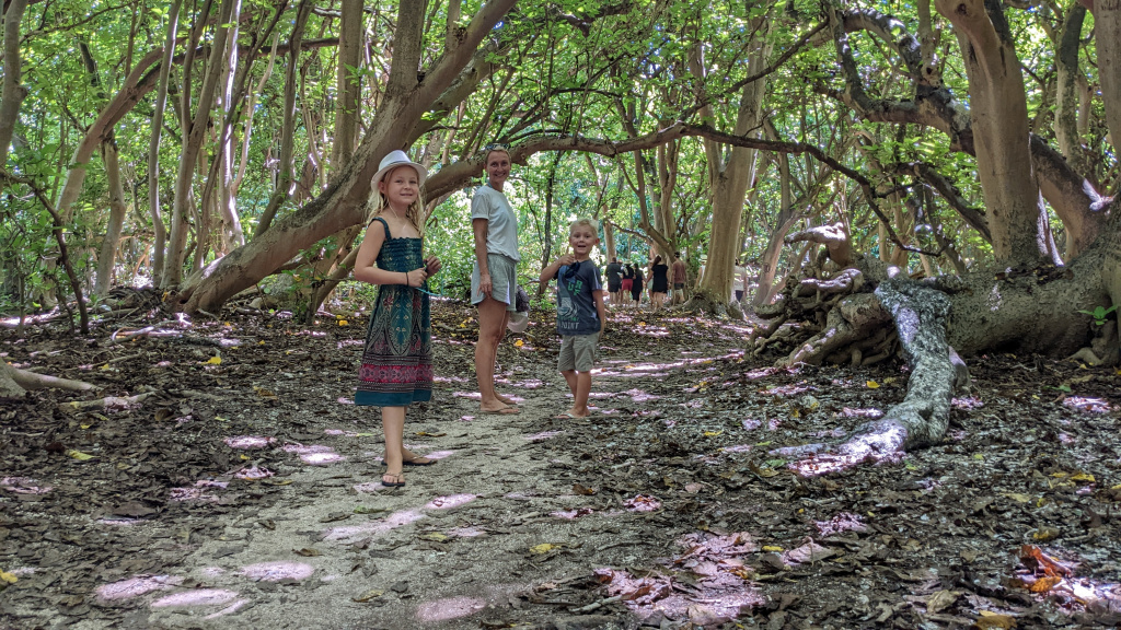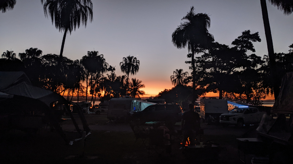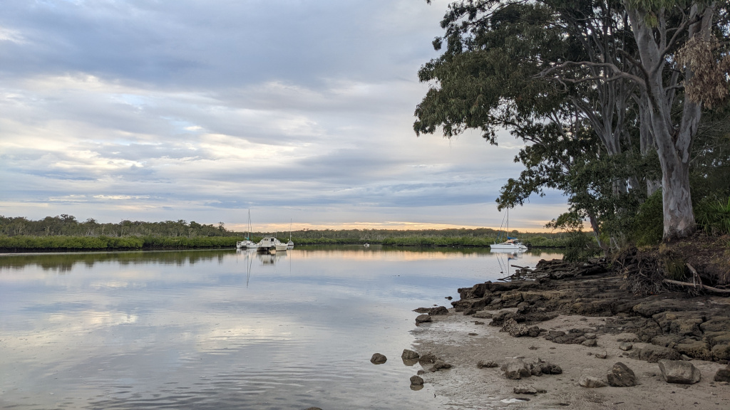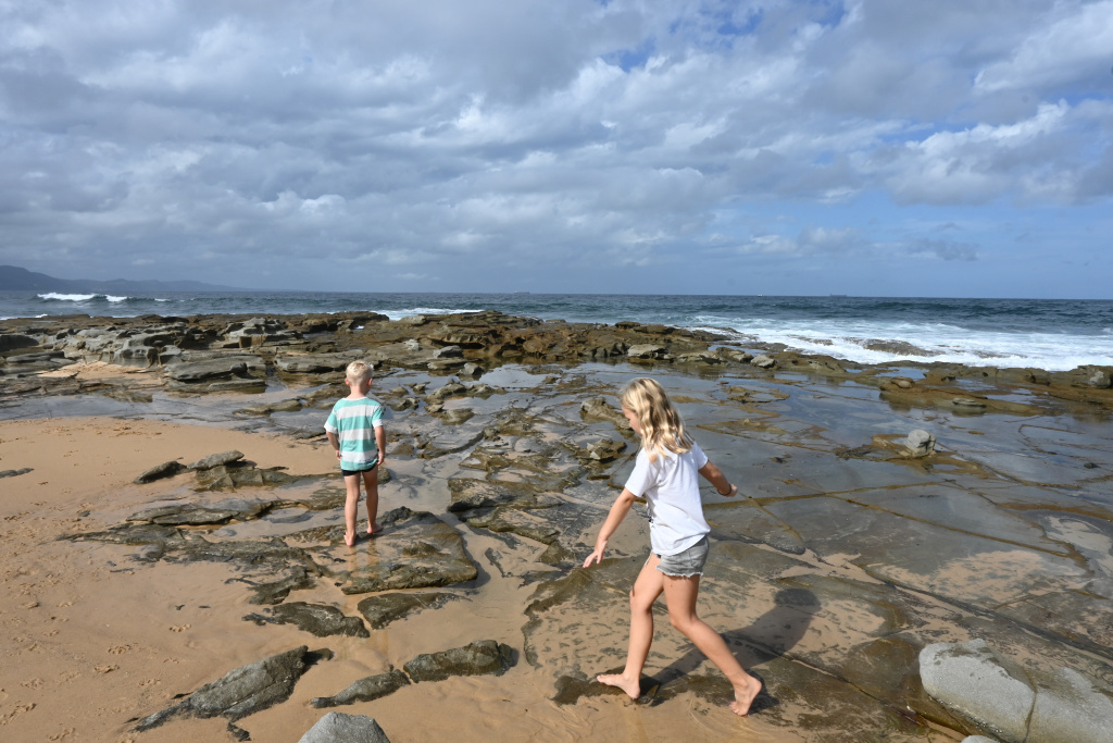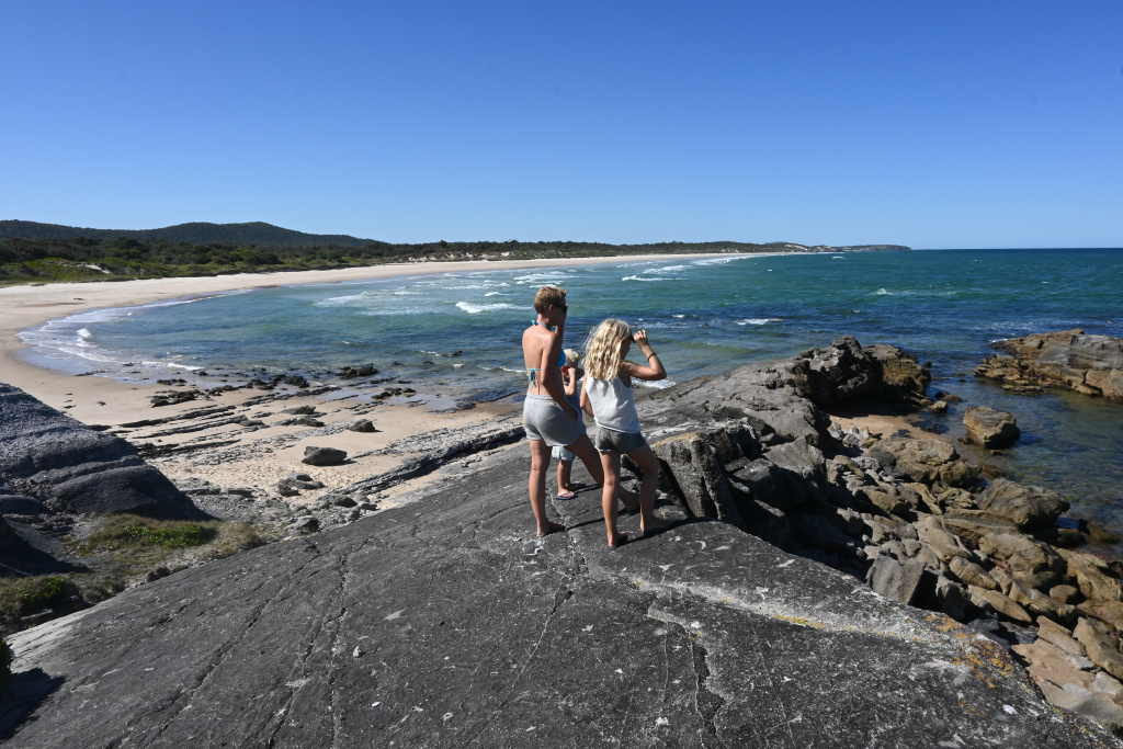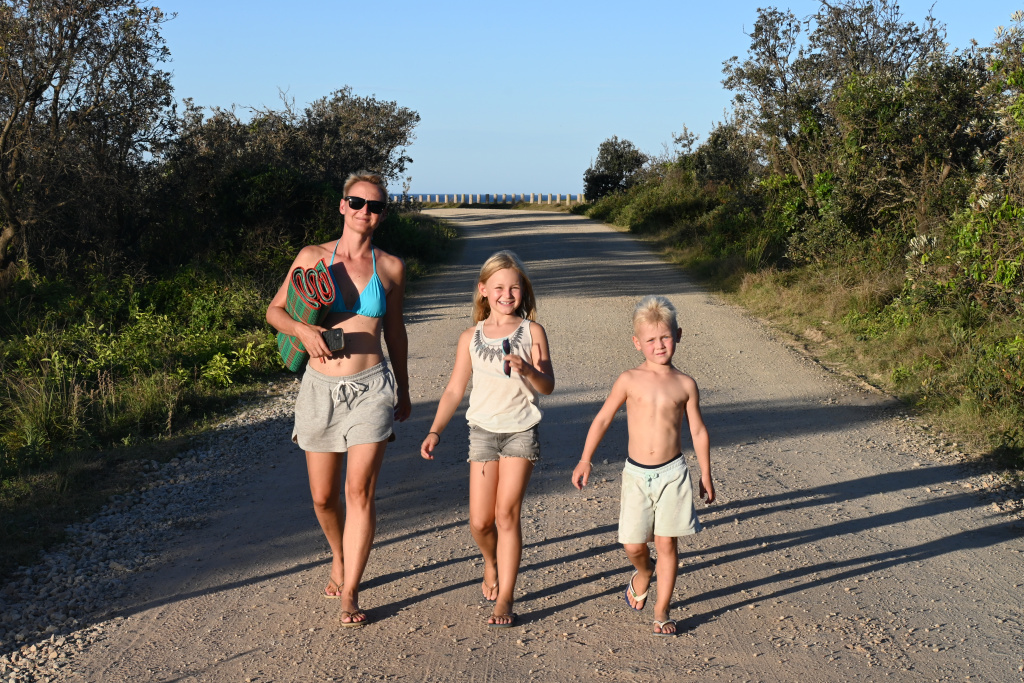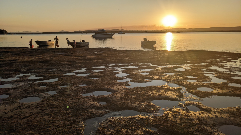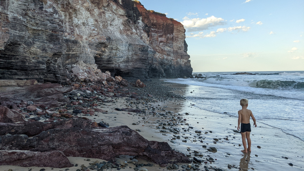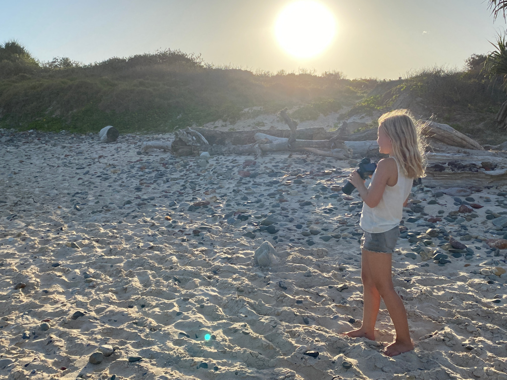Nach 7h Flug kommen wir gegen 22:00 in Sydney an. Wir fahren mit einem Taxi durch die Dunkelheit nach Caringbah. Im Erdgeschoss unseres Hotels befindet sich ein Pub und eine Sportsbar. Hier gibt es Begrüßungsgetränke für Groß und Klein vor dem Weihnachtsbaum. Nach einer kurzen Nacht gehen wir zur nahegelegenen Autovermietung und holen unser kleines Wohnmobil ab. Den Rest des Tages verbingen wir mit Einkaufen von westlichen Delikatessen;-) Reto ist glücklich mit der Krakauer, die aussieht wie die Bierwurst von Oma und Opa. Senf verbrauchen wir in den nächsten Wochen in rohen Mengen;-)Um erstmal nicht weit zu fahren, machen wir unseren ersten Stop in Wollongong, wenig südlich von Sydney. Vom Campingplatz sind es nur ein paar Schritte bis zum Meer.Wir werden von einem fantastischen Strand und tiefblauem Meer begrüßt.Und wir haben alles für uns!!Wir machen einen ausgedehnten Strandspaziergang.Wir klettern über Felsen und finden versteinertes Holz.Auf dem Pier in der nächsten Bucht schreien die Kinder „Riesenrochen“!! Wir denken zunächst bei den dunklen Flecken im Wasser handele es sich um Felsen.Tatsächlich! Die beiden Exemplare sind sicherlich 2m lang!Kormorane und Pelikane warten geduldig, ob beim Anlanden der Fischerboote etwas für sie abfällt.In den umliegenden Bäumen beobachten wir zahlreiche schwarze Kakadus. Später erfahren wir, dass diese in Australien recht selten sind.Die weißen Kakadus wiederum, werden unsere ständigen Begleiter. Delia und Reto freuen sich schon lange aufs Campen und haben zahlreiche Ideen, wie sie helfen können. Hier fährt Reto den Tank unseres Chemieklos zur Dumping Station.Wir werden 4 Wochen in Australiien bleiben und wollen in dieser Zeit die Ostküste bis zu den Whitsunday Islands hochfahren, um dann das Auto wieder nach Sydney zurück zu bringen. In Wollongong beginnt unsere Reise mit dem Pacific Drive.Nachdem wir uns durch den Großraum Sydney gearbeitet haben, stoppen wir nicht weit nördlich in The Entrance. Wir bemerken schnell, dass die Campingplätze besonders an den Wochenenden schnell ausgebucht sind. Es ist Hochsaison und nach Corona sind anscheinend noch mehr Camper als gewöhnlich unterwegs.Trotzdem haben wir auch hier den Strand fast für uns allein.Typisches australisches Sttraßenbild in Tuncurry. Platz ist hier keine Mangelware. Dafür hapert es an Fußwegen.Am Hafen beobachten wir die riesigen Pelikane.Wir laufen an der Mündung des Coolongolook Rivers entlang.Selbst der Fluß ist hier türkisfarben. Das könnte allerdings auch mit dem UV-Index von 13 zusammenhängen.Wir beobachten die Vögel und sehen ein paar Seeadlern zu, wie sie Fische fangen und gegen die Möwen verteidigen.Von hinten beobachten uns jede Menge Papageien.Aber nur bis Reto sie entdeckt.Wir haben die australischen Fish Shacks lieb gewonnen, auch wenn wir eigentlich keine Freunde der Friteuse sind. Aber frisch gefangenen, leicht fritierten Fisch mit Chips (Pommes) und Tartar-Sauce können die Australier einfach besonders gut.Was sie noch sehr gut können sind Spielplätze. Meistens in Symbiose mit öffentlichen Grillstellen.Mit vollem Bauch wandern wir am Strand zurück zu unserem Stellplatz am Sporty (Sportclub Tuncurry).Unendliche Weite. Wir sehen ab und zu etwas im Wasser aufblinken.Und dann sehen wir wirklich vom Strand aus eine ganze Delfinschule! Wir sind völlig geflasht!Reto sammelt sich als erster und jagt munter weiter Papageien.Den nächsten Tag verbingen wir mit Baden……und Chillen am Strand.Wir fahren ca. alle drei Tage 4-5h um dann zwei bis drei volle Tage an einem Stop zu haben. Hier sind wir im Yuraygir Nationalpark. Es gibt eine Feuerstelle, ein Bioklo und jede Menge Natur auf einer Klippe über dem Meer. Auf dem Weg zum Strand steht plötzlich das erste Känguru vor uns!Aus dem Beutel schaut das zweite heraus.Die folgende Lichtung gibt dann die ganze Großfamilie Preis!Beim Sundowner schauen wir den drei Surfern auf ihren Longboards zu.Hier wachsen Sandblumen!Und jede Menge Steine warten darauf……ins Meer geflitscht zu werden.Delia schnappt sich die Kamera.Sie hat entdeckt, dass die Kängurus bis an den Strand kommen.Auf dem Rückweg sammeln wir Feuerholz.Delia und Reto schmelzen Marshmellows;-)Am nächsten Tag brechen wir zu einer Strandwanderung auf.Immer auf der Suche nach Deflinen und Walen. Auch wenn die Walsaison leider gerade vorbei ist. Man kann ja nie wissen…Dafür finden wir eine riesige weiße Düne.Wie üblich werden wir beobachtet. Diesmal von einem Adler.Und die Kängurus begleiten uns. Sie scheinen uns genauso interessant zu finden wie wir sie.Die Sonne geht so langsam unter und taucht die Landschaft in goldenes Licht.Sundowner über dem Meer.Wir ziehen weiter nach Tin Can Bay. Wir haben gelesen, dass man dort bei der Fütterung von wilden Delfinen zusehen kann. Seit mehr als dreißig Jahren bekommen sie dort ca. ein Fünftel ihres täglichen Fischbedarfs als Frühstück. Wir haben Glück und heute kommt die ganze Großfamilie einschließlich Baby-Delfin Luna.Delia und Reto dürfen auch Fische verfüttern. Ganz vorsichtig nehmen die Delfine die Fische aus der Hand. Berühren darf man die Tiere nicht.Wir erkunden die Mangroven um die Flußmündung.Ein „lachender Hans“ oder Jägerliest , der größte Kingfisher Australiens.Der Motorway ist hinter Brisbane nur noch zweispurig. Das große Auto, Wind und die Straßen lassen uns weit weniger schnell voran kommen als geplant.Nach Sichtung der Aktenlage durch Reto, beschliessen wir, unseren Stop in „1770“ zu unserem Umkehrpunkt zu machen. Wir wollen uns die ca.1500km bis zu den Whitsundays und zurück sparen in der Annahme, dass wir noch genug Traumstrände in Asien sehen werden. Wie im Hintergrund zu sehen, sind die meisten Australier mit Pickups und riesigen Wohnwagen unterwegs.Endlich ist es soweit. Gemäß des liebsten Hobbys der Australier kaufen wir uns auch eine Angel.Und haben schneller Erfolg als wir dachten!Während wir den Sonnenuntergang genieß