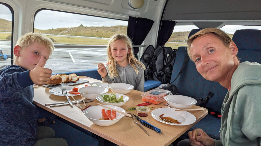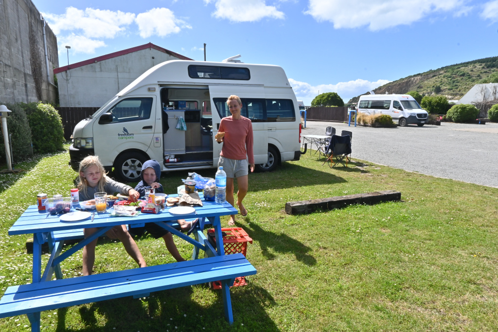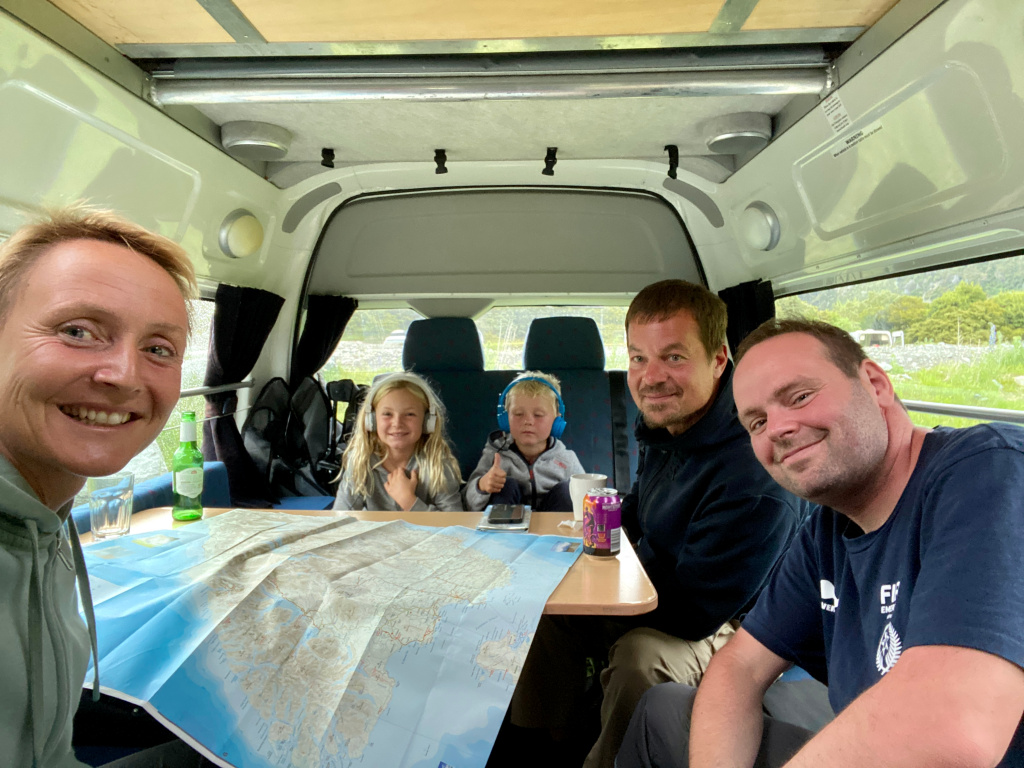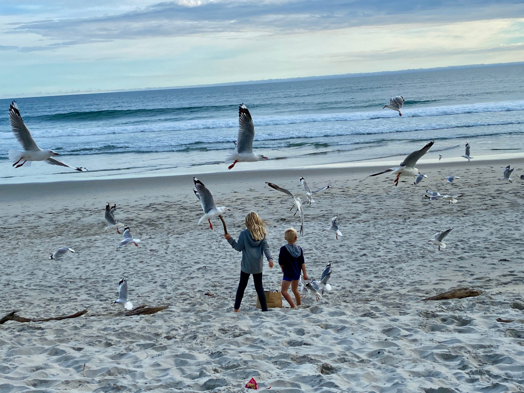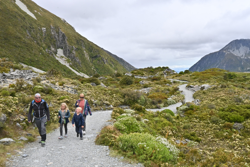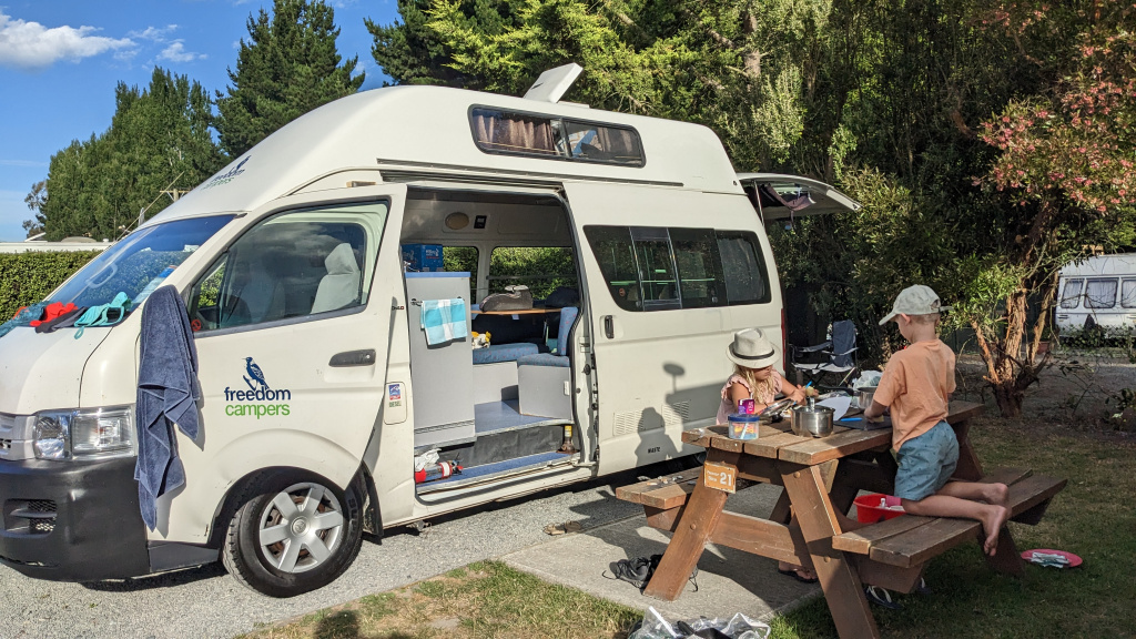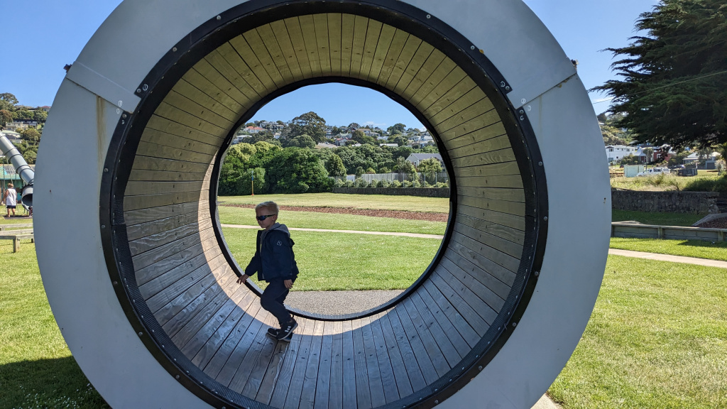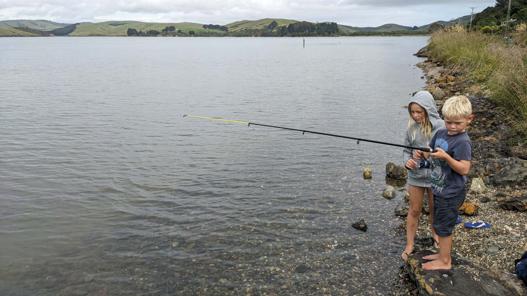 Mit einem Tag Verspätung fliegen wir in 3h von Sydney nach Auckland und kommen dort bei Dunkelheit und strömenden Regen an. Morgen fliegen wir weiter nach Christchurch um unseren Camper aufzusammeln. Die Stadtbesichtigung Auckland müssen wir auf das Ende unseres Neusseland-Aufenthalts verschieben. Am Flughafen in Christchurch gibt es Weihnachtsbaum-Donuts. Es ist ja auch schon der 15.Dezember!Auf dem Campingplatz in Christchurch nehmen wir uns einen Tag Zeit, um das Auto einzurichten und einzukaufen. Der Van hat knapp 400.000km auf der Uhr, schnurrt aber wie ein Kätzchen. Hoffentlich bleibt das so:-)Dann geht es los in Richtung Inselinneres. Wir sehen zum ersten Mal Schnee auf dieser Reise!Nicht lange und wir finden uns in eiinem Meer von Lupinien wieder.Fotostop!Es ist deutlich kälter hier als in Australien und das Wetter ist wechselhaft.Wir erreichen den Tekapo-See.Wir sind begeistert vom türkisenen Wasser vor schneebedeckten Bergen.Wir entschließen uns spontan zu bleiben. Anders als in Australien teilen wir uns den Campingplatz fast ausschließlich mit Touristen verschiedenster Nationen.Der morgentliche Blick auf den See. Obwohl unser Camper deutlich kleiner ist als das Wohnmobil in Australien, fühlen wir uns fast wohler. Delia und Reto haben es sich oben gemütlich gemacht.Vom Campingplatz brechen wir auf, um den Mount John zu besteigen. Oben befindet ein Observatorium und ein kleines Café, in dem wir leckeren Kuchen essen.Wir geniessen die Aussicht über den Tekapo-See.Der Rückweg führt uns hinunter zum See und am Ufer zurück.Wir erreichen gerade noch trocken den Camper, bevor es anfängt zu regnen.Reto und der Riesen-Kiwi. Wir sind schon gespannt, ob wir einen in natura sehen.Wir fahren weiter zum Pukaki-See und nutzen die Gelegenheit, am Ufer frisches Lachs-Sashimi zu kaufen und zu frühstücken.Alle lieben es!Wir fahren entlang des Pukaki-Sees tiefer in die Berge und campieren am Fuß des Mount Cook.Mit unserem Nachbarn Georg brechen wir unmittelbar zum Hooker Valley Track auf. Georg ist Hubschrauberpilot und passionierter Neuseeland-Liebhaber.Leider drücken die Wolken ins Tal, sodass die Gletscher nur ab und an durchschimmern.Reto auf der zweiten der drei Hängebrücken.Wir beobachten die Eisberge im Hooker-Lake, welche sich von der Gletscherzunge im Hintergrund abgespalten haben.Georg ist technisch bestens ausgerüstet und hat uns ein kleines Filmchen zusammen gestellt. Vielen Dank nochmals!Außerdem hat er jede Menge Insider-Tips parat.Am nächsten Morgen geben die Wolken den Gipfel des Mount Cook frei.Die ordentlich kalte Nacht haben wir mit Wärmflaschen und Heizlüfter überstanden. Die nächsten Tage sollen regnerisch werden. Also verabschieden wir uns schweren Herzens.Reto späht in Helm’s Klamm nach Orks. Hier wurde ein Teil von Herr der Ringe gefilmt.Auf der Weiterfahrt halten wir an einer der Lachsfarmen, die sich an den Abläufen der großen Bergseen befinden. Delia darf ihr Glück versuchen.Mit Ehrgeiz und Ausdauer fängt sich schließlich auch ein ordentlicher Lachs. Die eine Hälfte verzehren wir als Sashimi. Die andere Hälfte hauen wir in die Pfanne. Frischer geht’s nicht!Auf dem Weg zur Küste erkunden wir die Elephant-Rocks.Elefanten können wir zwar nicht erkennen……aber diese tollen Steinformationen eignen sich vortrefflich zum Klettern und Fotografieren.Am späten Nachmittag erreichen wir Oamaru an der Ostküste. Nebenan liegt gleich ein toller Spielplatz.Hier geht es beschaulich zu. Nachdem wir ohne Angellizenz nicht in den Seen fischen durften, nutzen wir die Gelegenheit, die Angel ins türkisfarbene Meer auszuwerfen.An der Steilküste liegt eine Kolonie von Blauaugen-Pinguinen. Früh morgens gehen sie auf Fischfang, um in der Abenddämmerung zurückzukehren. Fürs Zusehen verlangt man schlappe 70$ pro Person.Die Seelöwen können wir aber umsonst betrachten.Die Besitzerin des Casmpingplatzes verrät uns die zweite Pinguinkolonie nebenan, welche frei zugänglich ist. Zum Sonnenuntergang legen wir uns auf die Lauer. Unsere Geduld wird belohnt und wir sehen zu, wie sich die Zwergpinguine von den Wellen an den Strand spülen lassen, um zu ihren Nestern zu watscheln.Auf dem Weg nach Süden halten wir in einer der schönen Buchten.Die Erosion der Steilküste legt nach und nach immer mehr kugelförmige Sedimentgesteine frei: Die Moeraki-Boulders.Sie bestehen aus Calcit-gebundenem Lehm und Ton. Nachdem sie von den Wellen freigelegt werden, zerbrechen und versinken sie langsam im Sand. Wir wandern zwischen den Steinkugeln umher und nutzen den leeren Strand um eine Weihnachtsbotschaft in die Welt zu senden.Die Weihnachtstage verbringen wir am weißen Sandstrand von Dunedin. Es ist frisch, aber die Sonne scheint, sodass wir uns trotzdem ins Meer wagen.Wir beobachten Seelöwen und jagen Möwen.An Heiligabend entscheiden wir uns gegen kochen und burgern stattdessen am Strand!Die restlichen Pommes werden an die Möwen verfüttert.Bescherung im Bus!Von Dunedin erkunden wir den wilden Südzipfel der Südinsel Neuseelands. Zwischenstop am Kaka Point.Frühstücksstop am Meer.Achtung Seelöwen!Dahinten ist schon einer! Sie sind riesig und man rät uns immer mindestens 10m Abstand zu halten. Wanderung zum Nugget Point!Wir staunen über die Nuggets und beabachten kämpfende Seelöwen.Wir übernachten auf einem kleinen Freecamper bei Niagara, unweit von der Curio Bay. Wir angeln im von grünen Hügeln umgebenen Fjord.Wir halten am McCracken’s Rest und halten Ausschau nach Delfinen, bevor wir das Meer verlassen und nach Norden Richtung Te Anau fahren.Ausblick auf Stewart Island, Rückzugsort der letzten Kakapos.